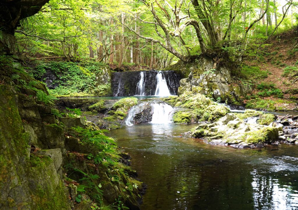 龍神の滝は会津鉄道と野岩鉄道の乗り継ぎ駅「会津高原尾瀬口」の近く
